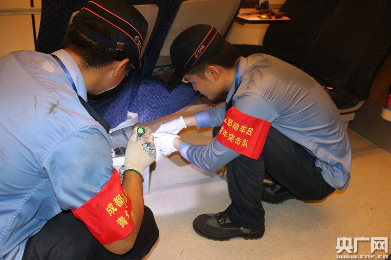 成都動車段青年突擊隊開展動車客服設(shè)施整修。(央廣網(wǎng)發(fā) 文帥攝)