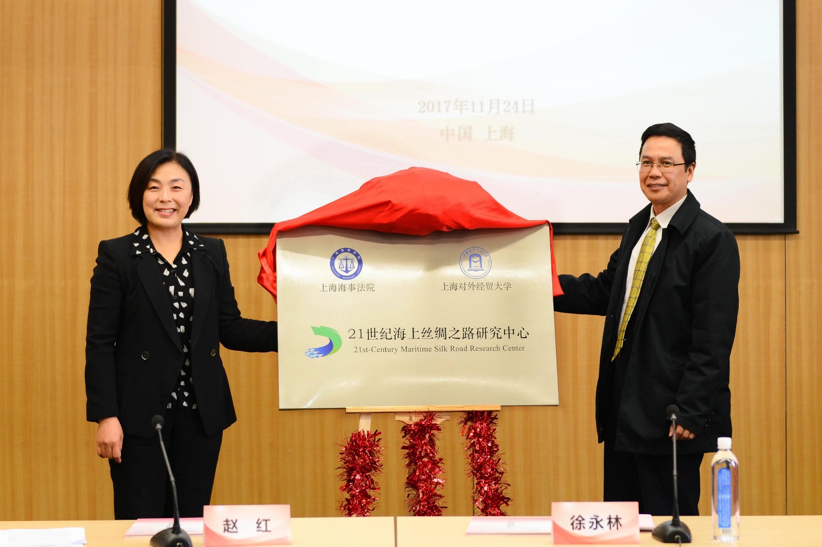 央廣網上海11月28日消息(記者周洪 通訊員 黃丹 姜彤)近日,上海海事法院與上海對外經貿大學舉行 “21世紀海上絲綢之路研究中心”揭牌儀式。上海海事法院院長趙紅和上海對外經貿大學副校長徐永林分別致辭,并代表兩家單位簽署了合作協議,共同為研究中心成立揭牌。