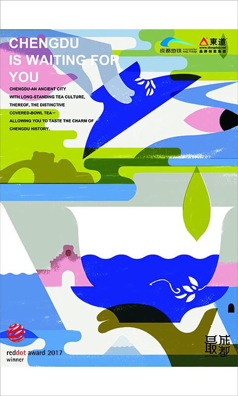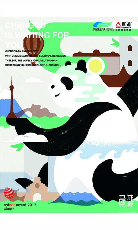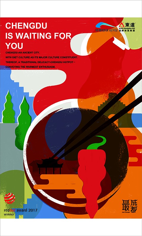 德國紅點獎評委會評價,“最成都”系列主題海報通過令人過目不忘的視覺畫面和高超的表達方式,展示了成都這座東方之城獨特的城市韻味。談到主題海報創作過程,海報設計方——東道品牌創意集團表示,成都是中國最重要的旅游城市之一,同時也是蘊含著悠久文化的歷史名城。如何通過海報的視覺特征讓國內外游客記住成都這座城市,感受其與眾不同的氣質是設計過程中的最大挑戰。為此,設計師團隊實地走訪寬窄巷子、熊貓基地、青城山等多處景點和成都大街小巷,對成都的文化及特色進行專業化的分析調研,深入挖掘成都旅游及飲食文化資源,在設計過程中分析并反復確認每一個畫面元素的來源及表達方式,同時也對字體以及版式進行精準選擇,最終呈現出一幅幅富有成都韻味和展現城市深厚底蘊的精美作品。