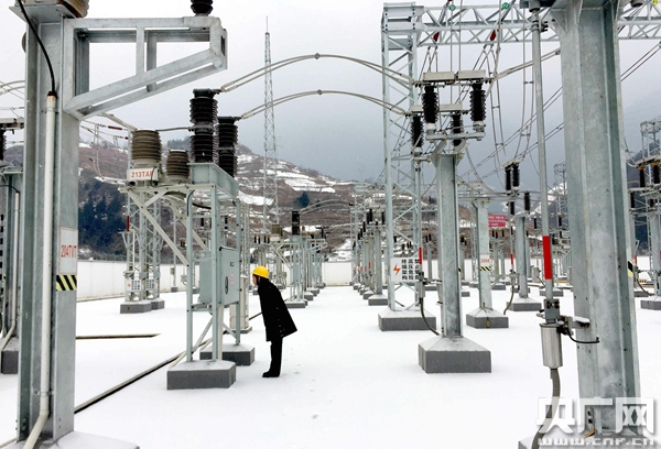 1月27日,成都供電段組織干部職工對(duì)此次降雪受影響區(qū)段變電所設(shè)備進(jìn)行巡視檢查。(尹煒 攝)