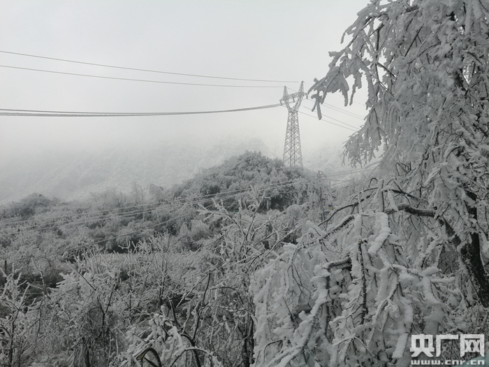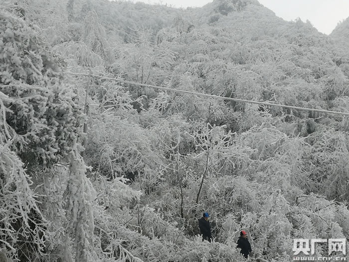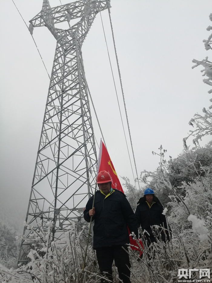 1月29日下午,記者與巡線工人一起進入都勻螺絲殼山頂。這是整個都勻市海拔最高、且每年凝凍最大、最寒冷的地方,每年冬季,山頂上漫山遍野白茫茫一片全被冰雪覆蓋。作為都勻供電局“電亮先鋒”黨員突擊隊隊員和線路運行巡視員工之一,每天面對嚴寒,深入凝凍最大的螺絲殼山頂巡線,對于都勻供電局線路運行二班班長毛光祥毛光祥來說已經是家常便飯,他說:“我們班上12個人,從1月1號以后,我們就取消休假,每天走在這個山上,一個是路滑,天寒地凍,沒辦法就只有靠我們隊員自己拿鐮刀或柴刀在這個山水砍出一條路來,每個隊員基本上每天都要走五到六公里的線路,不間斷的巡視,保證我們的這個線路通暢。”