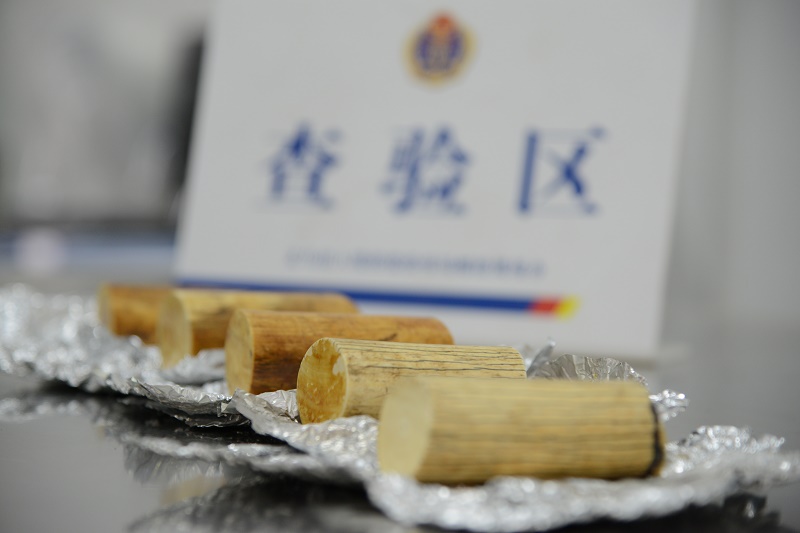 央廣網義烏2月1日消息(記者李佳 通訊員黃金)記者今天從浙江檢驗檢疫局獲悉,義烏郵路口岸工作人員近日在對進境郵包進行X光機查驗過程中,發現一個阿拉伯聯合酋長國的進境郵包X光機圖像異常,后通過人工開包查驗,發現該包裹內有5根用錫紙包裝的疑似動物骨類物品,重1千克。經實驗室鑒定,該物品為象牙,現場工作人員依法予以截留,這也是義烏郵路口岸首次截獲象牙。