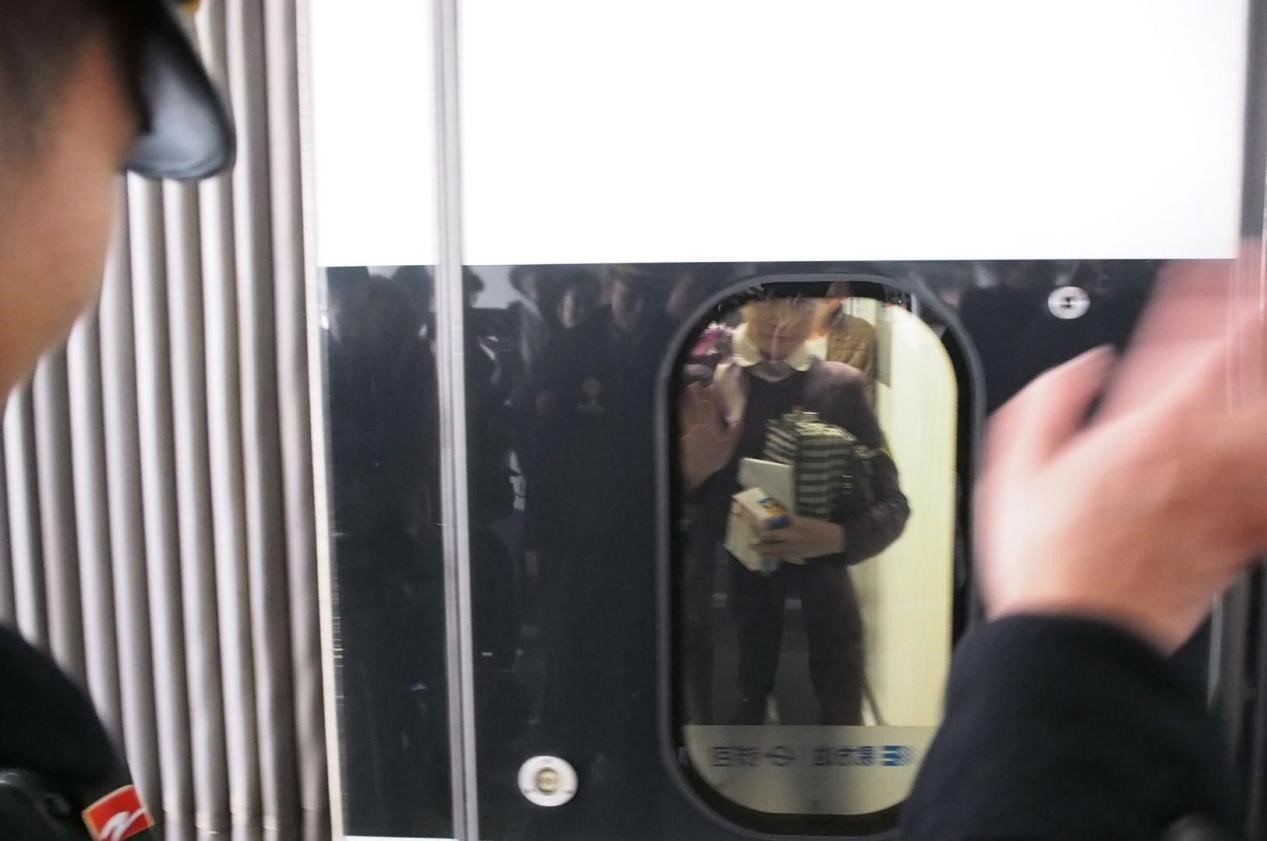 12點(diǎn)29分,列車關(guān)門,隔著玻璃,兩人最后深情對視了一眼,隨著列車發(fā)車,金鑫目送列車遠(yuǎn)去。