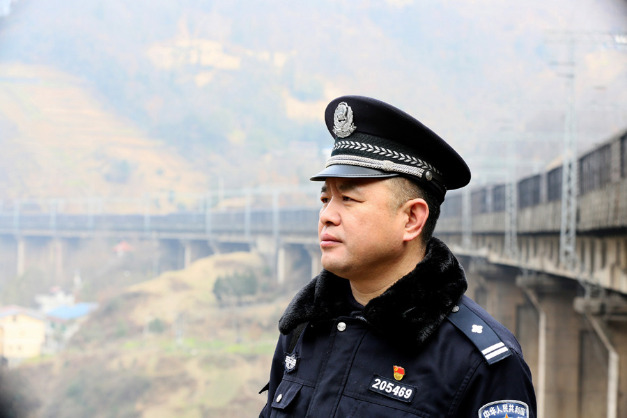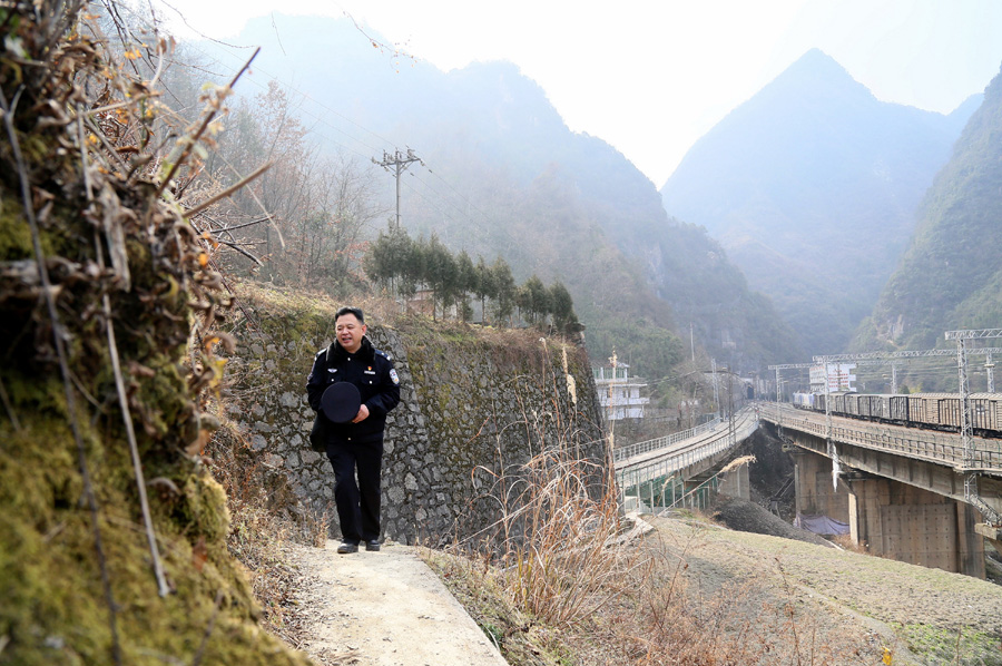 今年50歲的范雪艷是安康鐵路公安處紫陽站派出所巴山警務(wù)區(qū)的駐站民警,他所在的巴山車站地處陜川交界、環(huán)境惡劣的大巴山腹地,這里是整個(gè)襄渝線上隧道最長、橋梁最高、曲線半徑最小、線路坡度最大、海拔最高、生活條件最差的車站。山高路陡,交通不便,出門基本靠走,買什么東西都要到十幾公里以外的小鎮(zhèn)上,加上人煙稀少,經(jīng)濟(jì)落后,治安復(fù)雜,曾經(jīng)這里是貨盜最猖獗的地方,老百姓隨意穿越鐵路和大牲畜上道的問題更是家常便飯。在這個(gè)小站警務(wù)區(qū),老范一待就是五年,他建立的“全局明星警務(wù)區(qū)”也成為警民一家親的見證。