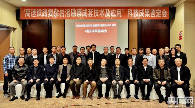 “高速鐵路復(fù)雜巖溶勘察成套技術(shù)及應(yīng)用”科技成果鑒定會(huì)專家合影
