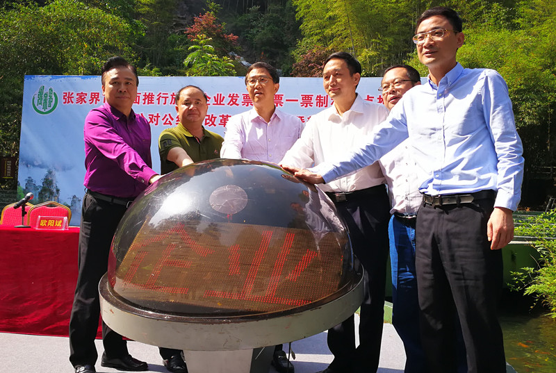 央廣網張家界5月8日消息(記者鄧文輝 通訊員王建軍)5月8日上午,張家界市在武陵源寶峰湖景區啟動全域旅游改革新舉措,全面推行旅游企業發票門票“一票制”,試點推行全域旅游“公對公”結算。