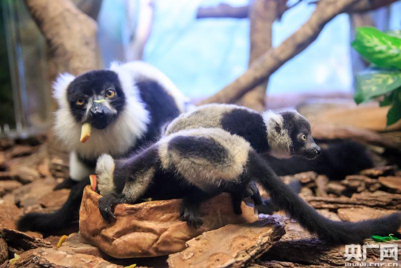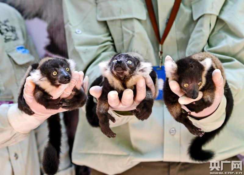 央廣網廣州6月18日消息(記者郭翔宇 通訊員麥念萍)記者從廣州長隆野生動物世界獲悉,生活在馬達加斯加島東部赤道雨林里的特有物種——斑狐猴近日在該園成功誕下三胞胎幼崽。這也是我國首例斑狐猴三胞胎。
