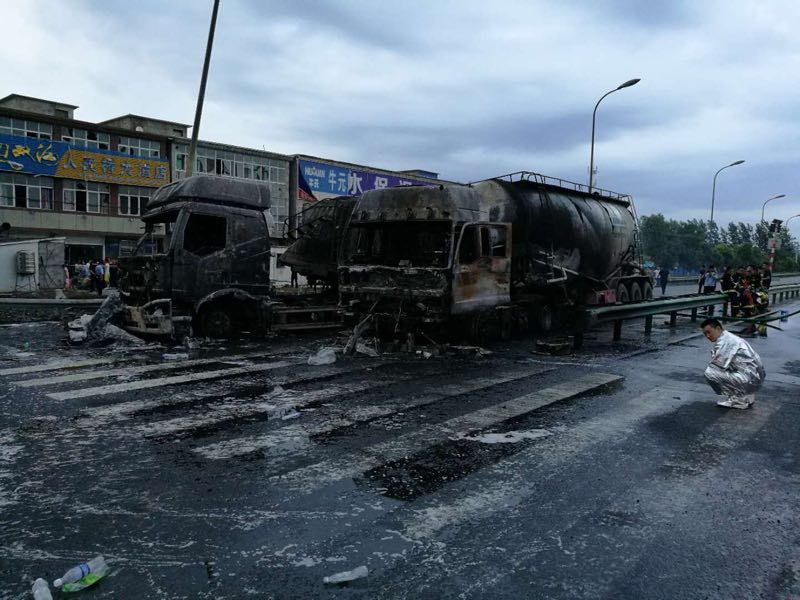 據了解,油罐車在起火前裝有汽油,兩車追尾后便起火,司機已經無法控制,立即下車撥打了報警電話,由于火勢蔓延較快引發大火,經過消防隊員近130分鐘的緊張撲救,大火才被完全撲滅。