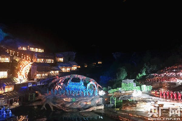 張家界大型山水實(shí)景音樂劇《天門狐仙·新劉海砍樵》演出現(xiàn)場(chǎng)