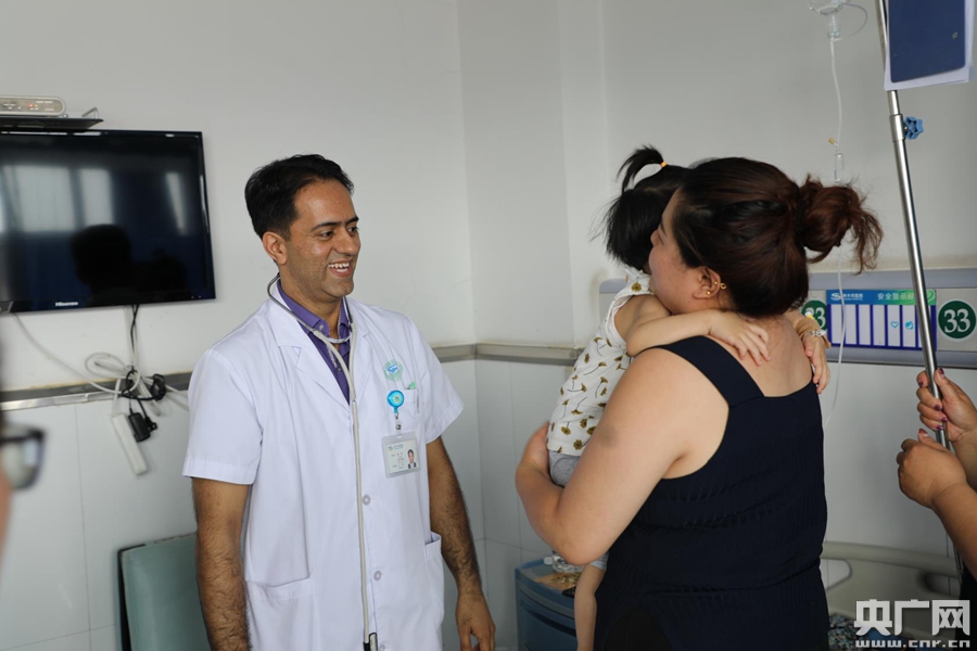 比拉爾·海帝(左)查看小患者的恢復情況(央廣網發 阿琳娜 攝)