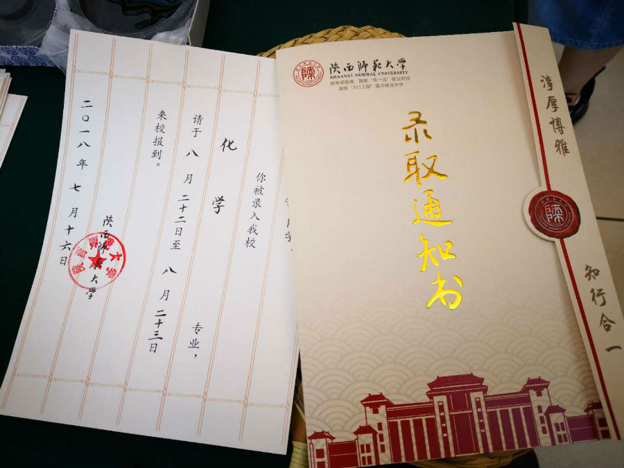 用毛筆為高校新生書寫錄取通知書一直是陜師大的傳統,是責任,更是情懷。自2007年起,陜西師范大學開始采用毛筆書寫的方式,為新生獻上一份沾染墨香的錄取通知書。陜師大堅持組織老教授毛筆手書錄取通知書這一做法突出了該校教師教育的辦學特色,彰顯了學校深厚的人文底蘊和學術氛圍,同時也把重視漢字書寫意識和優良傳統、把老教授對每個大學生都要重視漢字書寫的殷切希望第一時間傳遞給學生,啟發學生注重包括書法在內的傳統文化素養的學習。