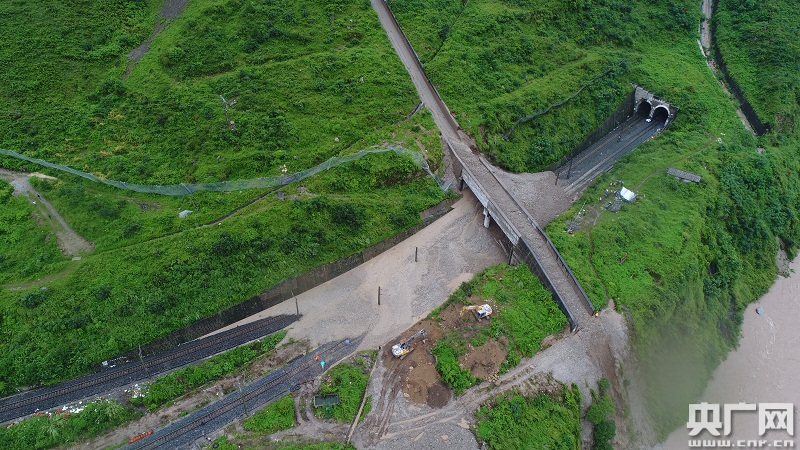 8月2日成昆鐵路再度發生泥石流水害,約3.12萬方泥石上道掩埋線路,成昆鐵路中斷行車。張挺攝