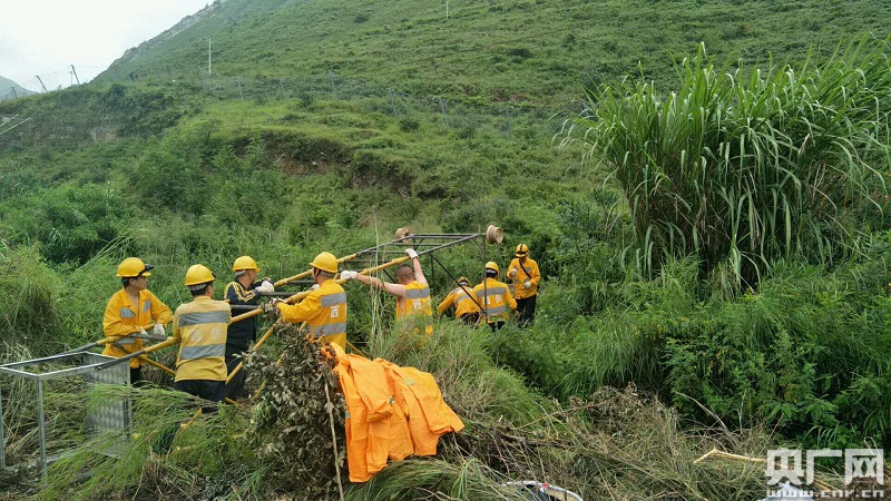 8月2日先期抵達災害現場的供電職工投入搶險救援。馬志鵬攝