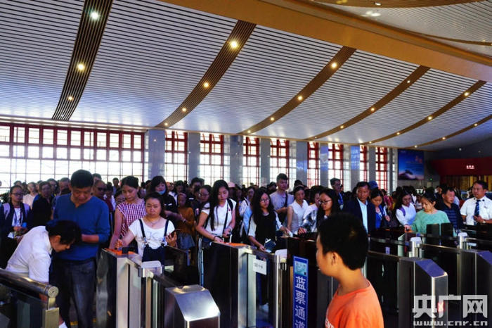 旅客在楚雄站有序排隊(duì)檢票進(jìn)站乘車(央廣網(wǎng)發(fā) 郭婧 攝)