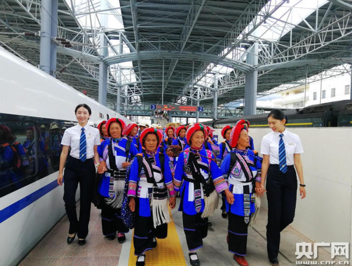 彝族群眾在大理站幸福體驗(yàn)昆楚大鐵路動(dòng)車出行(央廣網(wǎng)發(fā) 李喜喜 攝)