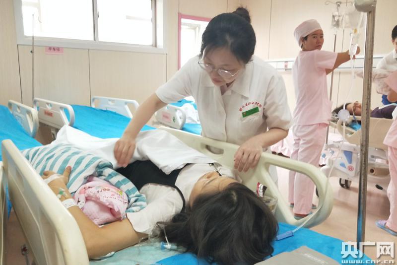 圖為尹主任在觀察室檢查產(chǎn)婦產(chǎn)后恢復(fù)情況 (央廣網(wǎng)記者 黃炎秋 攝)