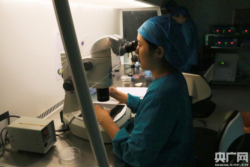 圖為張怡醫(yī)生正在進(jìn)行試管嬰兒胚胎培養(yǎng) (央廣網(wǎng)記者 黃炎秋 攝)