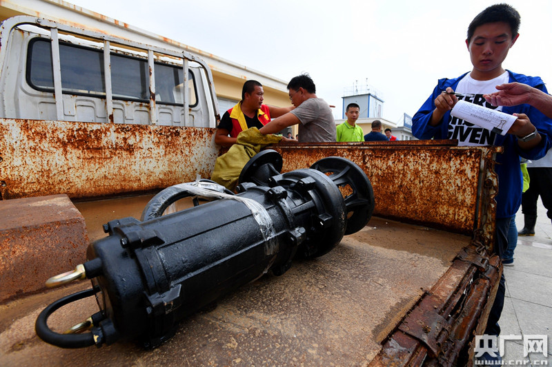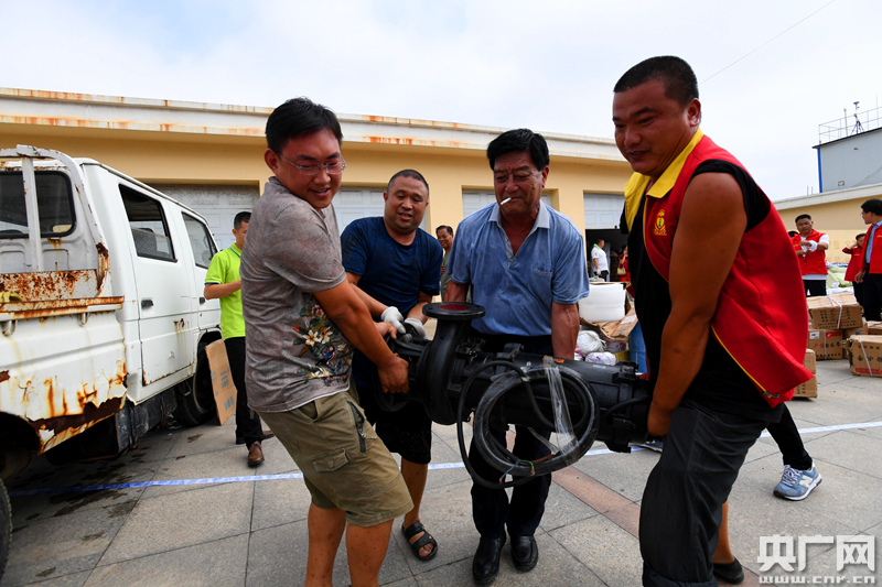 據紀臺鎮辦公室主任苗春雨介紹,如今紀臺鎮最緊缺的物資就是300-400立方流量的大功率抽水泵以及配套的送水帶等,還缺100多臺。作為壽光最大的蔬菜大棚基地,紀臺鎮30600個蔬菜大棚在這次洪災中都不同程度損壞,目前仍有眾多大棚泡在水中,單單依靠抽水泵遠遠不夠,所以抽水的消防車也是紀臺鎮目前極為需要的。(央廣網發 通訊員劉延珉 攝)