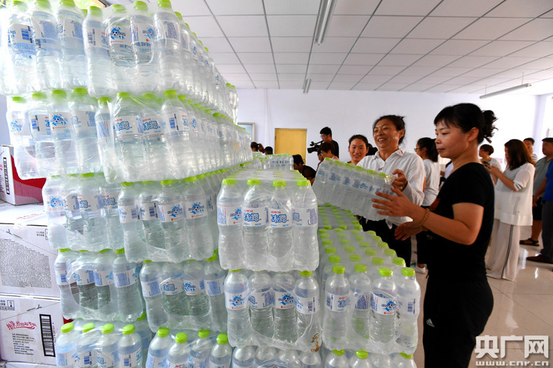隨后,記者跟隨運送物資的車輛來到位于上口鎮中心小學的物資接收點,這里聚集了大量志愿者和前來捐贈的愛心企業。在現場工作人員的協調下,志愿者對車上的物資進行了搬運和清點。(央廣網發 通訊員劉延珉 攝)