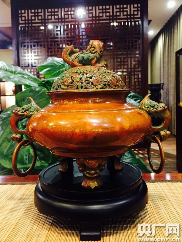 土金勇介紹,三百多年來,斑銅一直承襲著古代青銅“重器”的文化符號,過去不是出現在一些重要的場合和儀式中,就是出現在達官貴人、文人雅士的身邊。直到上世紀80年代,斑銅才開始走進大眾日常的生活,現在也有一部分作為旅游商品面市。