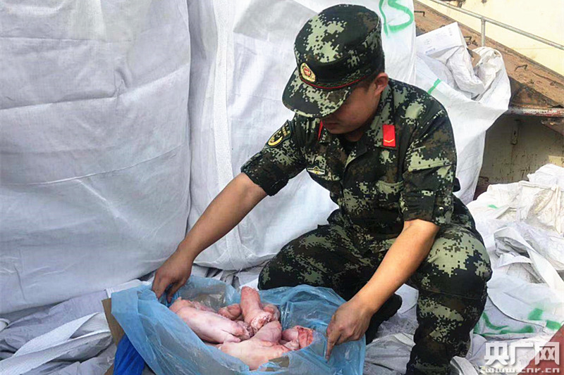 海警官兵現場檢查凍品。(央廣網發 廣東海警一支隊 供圖)