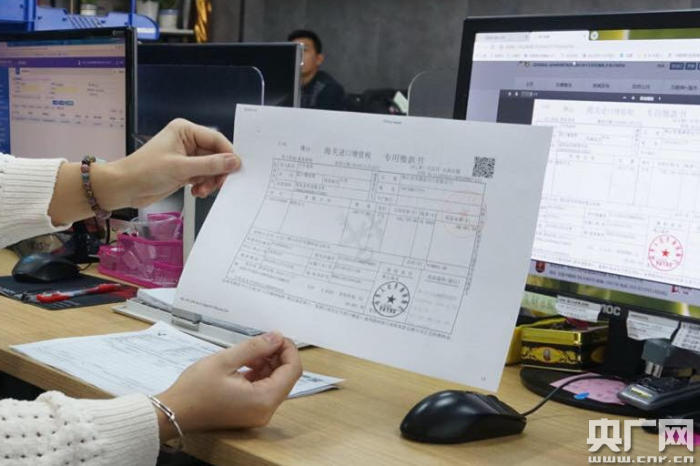 佛山首票由企業自行打印的《海關專用繳款書》(央廣網發 通訊員供圖)