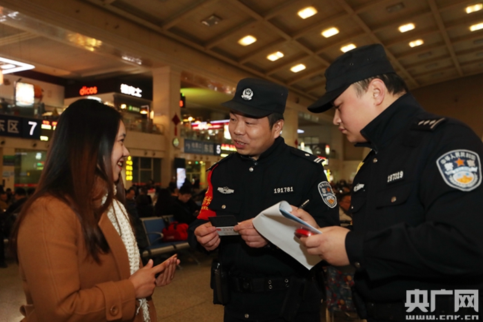 12月10日,武漢鐵路公安處漢口車站派出所民警正在開展票源調(diào)查(央廣網(wǎng)發(fā) 胡金力 攝)