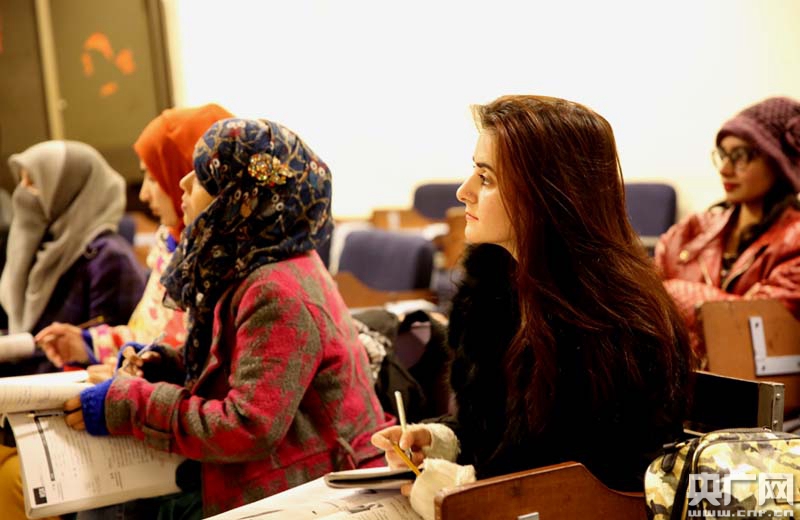 伊斯蘭堡孔子學院,明月和她的同學正在學習漢語(央廣網記者 張江元 攝)