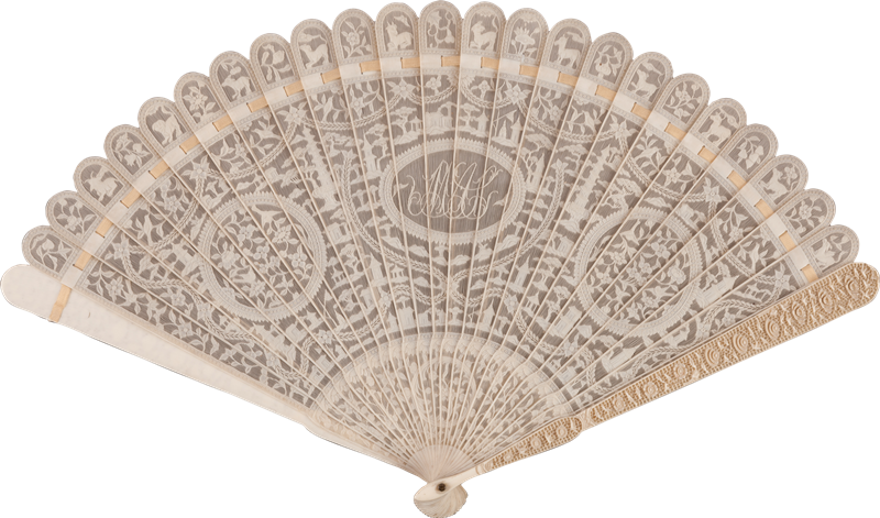 外銷扇,是在清代中西海上貿(mào)易背景下應(yīng)運而生的外銷工藝品。16世紀(jì),東西航線的開通催生了大規(guī)模海上貿(mào)易。茶、絲綢和瓷器,源源不斷從古老的中國輸往西方國家,一同漂洋過海的,還有神秘的東方文化。中國趣味和中國風(fēng),在西方市場引發(fā)了廣泛的好奇與向往。中國工匠尤其是廣州工匠將“廣式”工藝與西洋審美相融合,創(chuàng)作出了大量中西風(fēng)格共融,專供外銷的扇子。這些精巧華美的外銷扇價格相對低廉,極大滿足了西方市場對扇子的熱切渴望和需求,因此,“廣州制作”(Made in canton)成為享譽世界的知名品牌,“中國趣味”成為當(dāng)時最新時尚的代名詞。