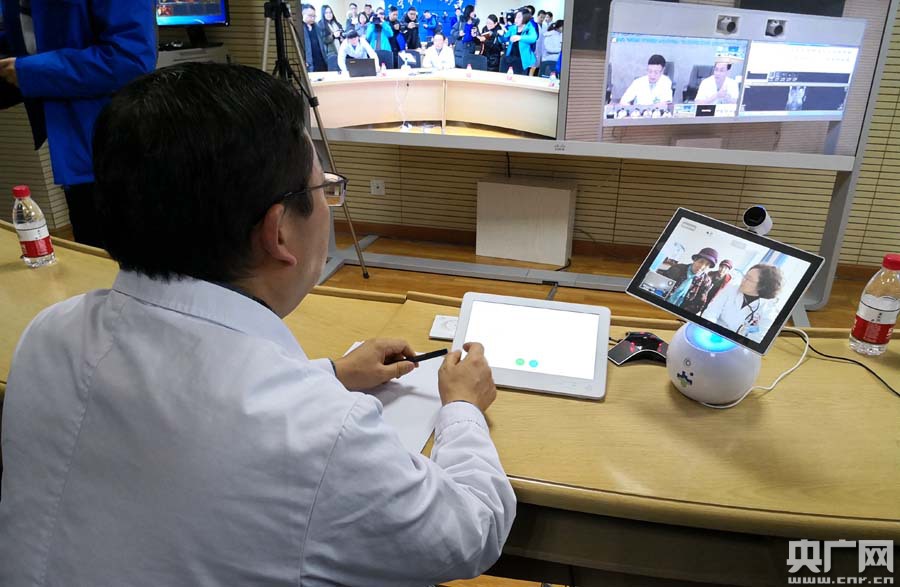 西寧市第一醫療集團總院專家正在利用遠程會診系統對分院患者進行診斷(央廣網記者葛修遠攝)