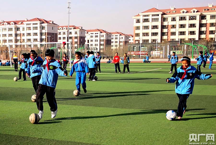海東市高鐵新區學校的學生正在上體育課(央廣網記者葛修遠攝)