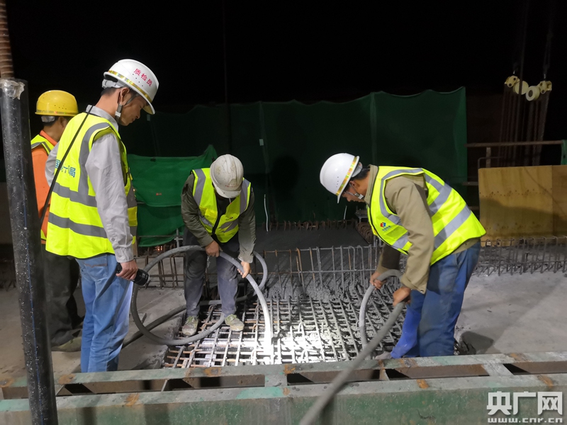 玉磨鐵路關坪雙線大橋連續梁最后一倉混凝土澆筑。央廣網發 沈濤攝影