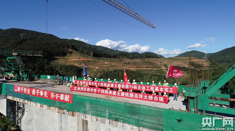 關坪雙線大橋合攏,意味著玉磨鐵路15標段重難點施工項目全部完工,標段施工重大安全風險基本消除,成為全線首個主體工程完工的標段。