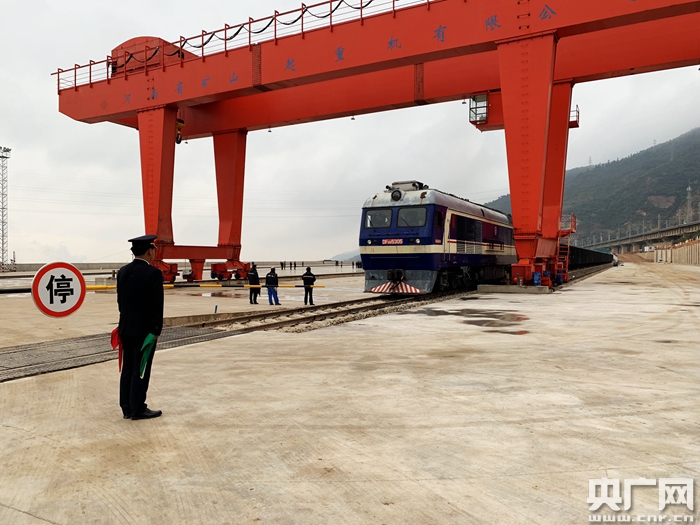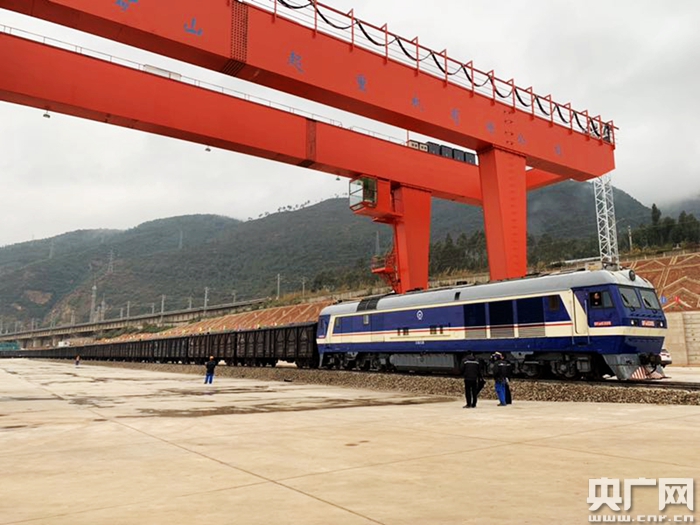 貨物列車首次開進玉昆鋼鐵集團鐵路專用貨場(央廣網發 石佳 攝)