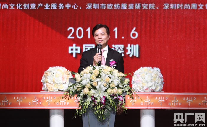 深圳市時裝設計師協會會長周世康致辭(央廣網發 承辦方供圖)
