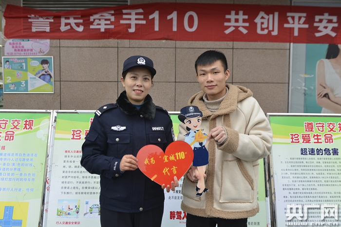 央廣網(wǎng)武漢1月11日消息(記者張毛清 通訊員湯潔 張君)1月10日上午,在湖北宜城市襄沙大隊武商門前,一位警花姐姐與小伙子同握著一張“我為宜城110代言”的牌子,正面向鏡頭合影拍照,這一舉動吸引不少群眾駐足觀看,進而紛紛走上前一探究竟。