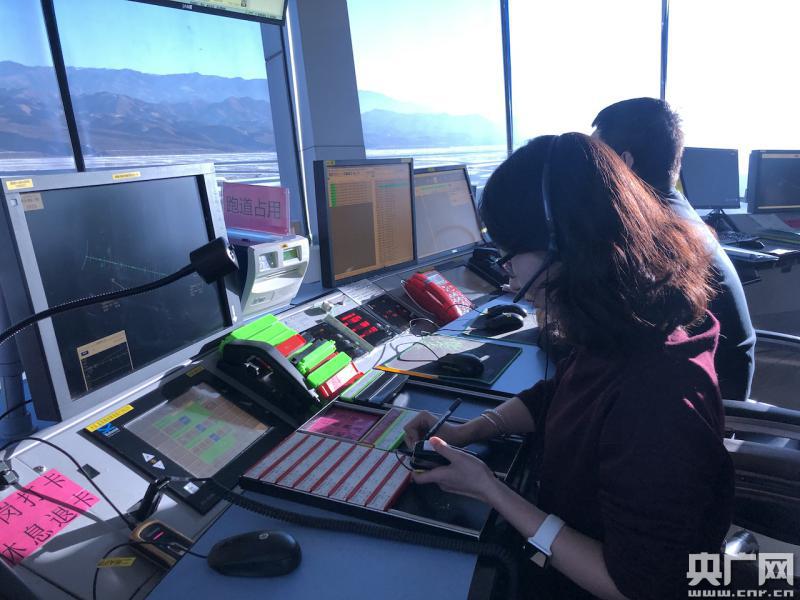 央廣網(wǎng)西寧1月23日消息(記者劉澤耕 通訊員李雨濃)“02199,西寧塔臺早上好……跑道外稍等一分鐘……地面風(fēng)290.5m/s,可以起飛……”在青海西寧曹家堡國際機(jī)場塔臺,民航青海空管分局塔臺管制員袁佳瑞頭戴耳麥,手持話筒,通過無線電調(diào)配飛機(jī)的飛行高度、方向以及起降時的飛行動態(tài),目光緊盯飛機(jī)一直到其消失在視線之內(nèi)。袁佳瑞說,在飛機(jī)起飛降落過程中,要保證跑道沒有航空器等障礙物,做到掃視跑道,目迎目送。