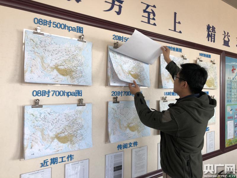 氣象臺預(yù)報員查看氣象資料 (央廣網(wǎng)記者劉澤耕攝)