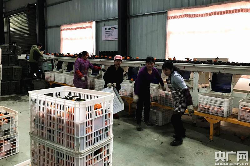 (工人們對果子進(jìn)行分選 央廣網(wǎng)記者堯遙攝)