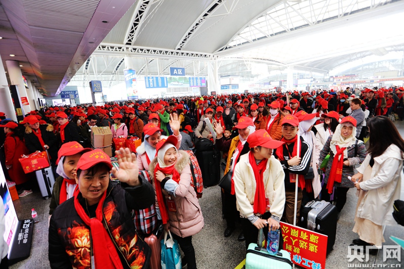 務(wù)工人員進站候車(央廣網(wǎng)發(fā) 楊航 張雪松 攝)