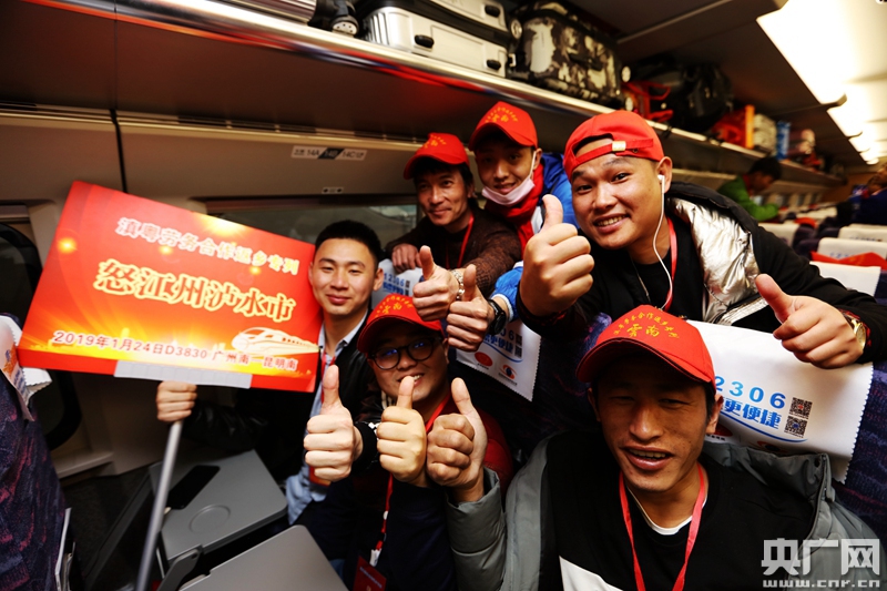 央廣網(wǎng)1月27日消息(記者李健飛 通訊員楊航 張雪松)1月24日10時42分,滿載600多名云南籍外出務(wù)工人員的動車緩緩駛出廣州南站,一路奔跑,駛向1280公里外的云南昆明。
