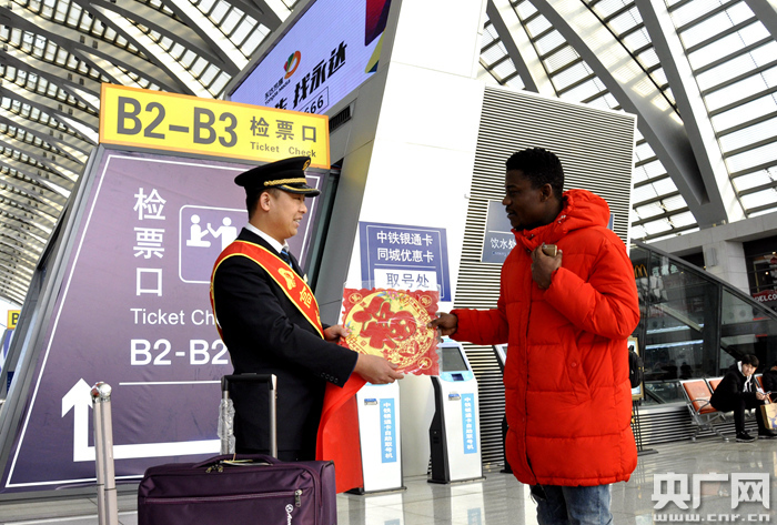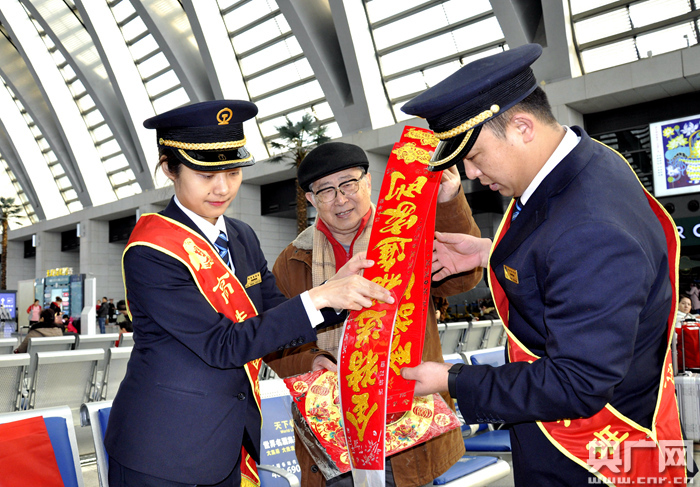鐵路天津西站小年向旅客贈送福禮情暖回家路(央廣網發 天津西站供圖)