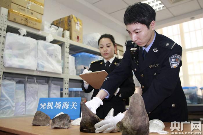 經(jīng)國家林業(yè)局野生動植物檢測中心鑒定,大連海關(guān)查獲的四個角塊均為犀牛角。由于國際市場對犀牛角有所需求,盜獵者因此可獲得非常高的經(jīng)濟利益。在有些國家,犀牛角被制成傳統(tǒng)藥材,有些國家把犀牛角看作社會級別的象征,由于利益驅(qū)使犀牛被大肆捕殺,現(xiàn)被列入《瀕危野生動植物種國際貿(mào)易公約》附錄。中國作為《瀕危野生動植物種國際貿(mào)易公約》簽字國,從1993年起,犀牛角被列為國家禁止進出口的珍貴動物制品,對出售、收購、運輸、攜帶和郵寄犀牛角的行為都要依法查處。目前,該案已移送緝私部門作進一步調(diào)查處理。