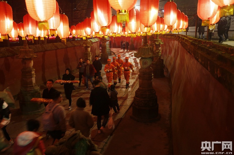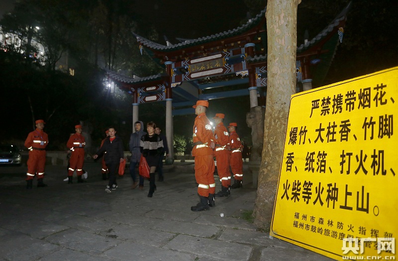 央廣網福州2月5日消息(記者萬存靈 通訊員童鵬程)2月4日是農歷除夕夜,在鼓山風景區涌泉寺里,福建森林消防總隊福州大隊二中隊消防員一邊對進入寺內的市民進行火源檢查,一邊提醒大家注意防火用火。