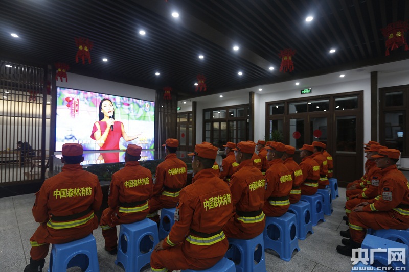 備勤人員,在休息點觀看春節聯歡晚會。(央廣網發 通訊員童鵬程攝)