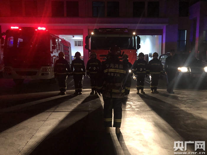 地震發生后茫崖消防大隊立即集結人員裝備做好救援準備(央廣網發 茫崖消防供圖)