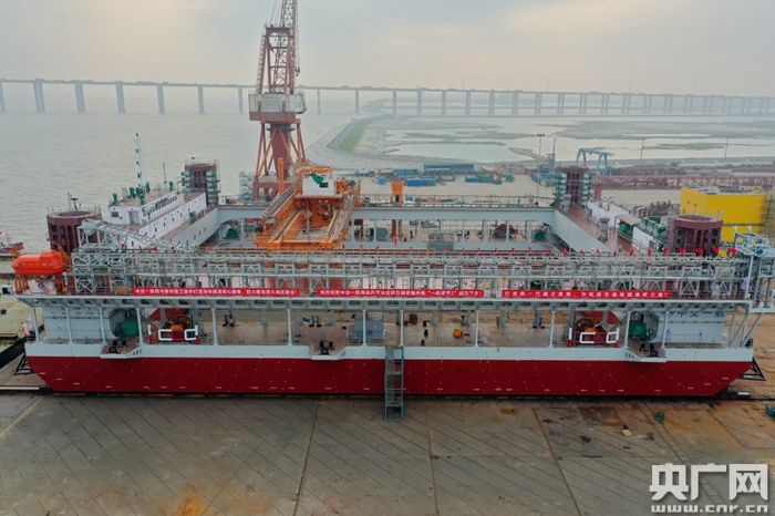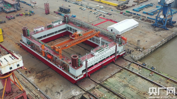 世界最大碎石鋪設整平船下水(央廣網發 通訊員岳路建 攝)