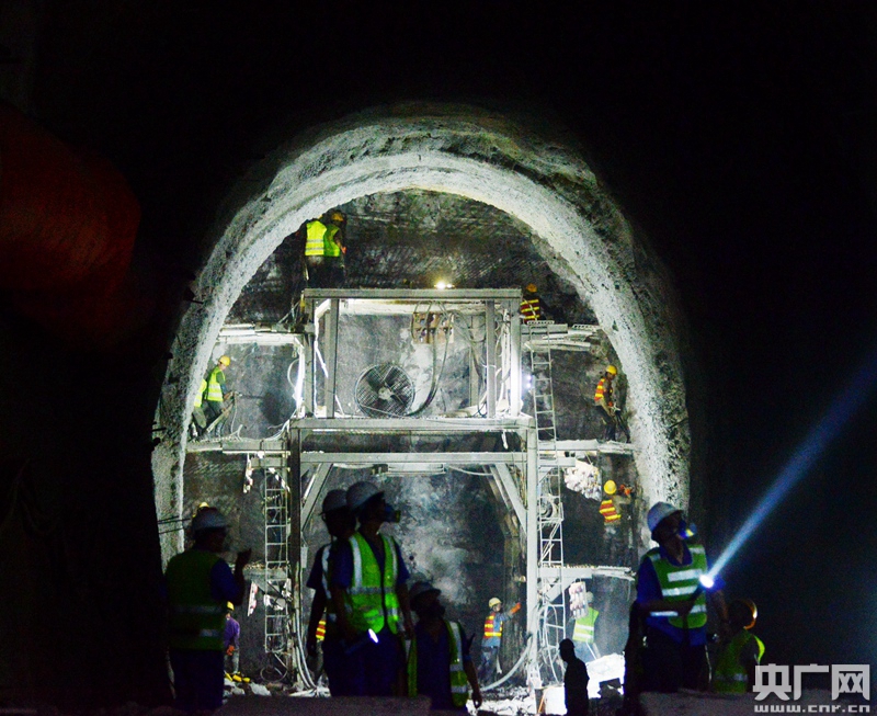 施工人員在安裝了有害氣體自動監測報警裝置的洞內作業(央廣網發 張偉明 攝)