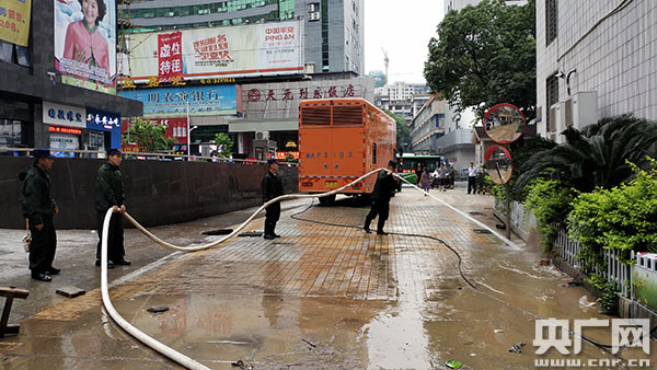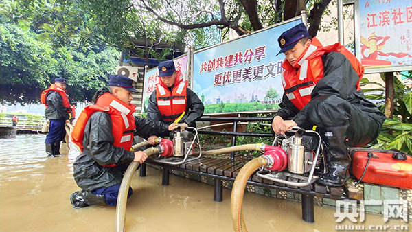 森林消防指戰員對內澇區進行排澇(央廣網發 通訊員曹軼群 攝)