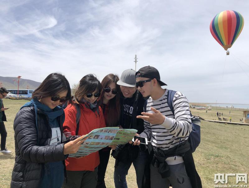 少數民族學生和留學生走進青海湖畔(央廣網記者 劉澤耕 攝)